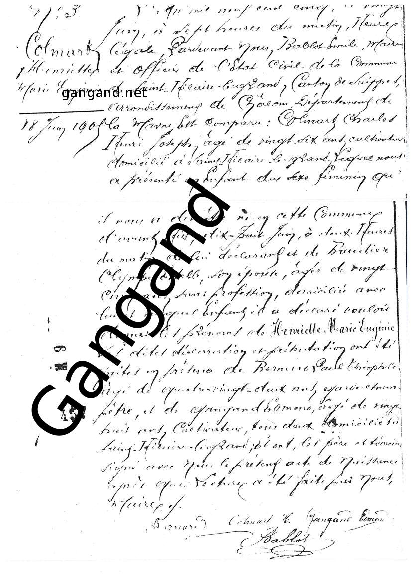 | Birth of a daughter #1 | Henriette Marie Eugénie COLMART June 18, 1905 – 02:00 (Age 26 years) |